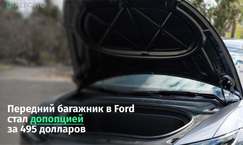 Ford сделал передний багажник опциональной функцией за 495 долларов на электрокроссовере Mustang Mach-E модельного года 2026. Об этом сообщает Ford Authority. Покупатели заметили специальный чекбокс в конфигураторе, который говорит о том, что чтобы получить вставной модуль с дренажной системой в переднем багажнике, нужно будет доплатить. Без этой опции пространство под капотом остается неиспользуемым. Ford основывает решение на внутренних данных, согласно которым многие владельцы не задействуют передний багажник в повседневной эксплуатации. Ранее передний багажник был во всех комплектациях электрокаров. Это изменение оказалось частью более широкого пересмотра оснащения автомобилей 2026 модельного года. На различных версиях платными становятся различные части автомобилей. Так, к примеру, инженеры предлагают добавить физические ручки задних дверей на некоторых модификациях для удобства пассажиров второго ряда. Ранее стало известно, что Ford сокращает рабочие места в Южной Африке из-за ко
