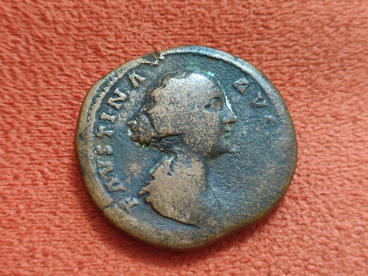 Хочу показвать вам одну из самых крупных античных монет. Номинал называется "сестерций"! 24 грамма бронзы, 32 миллиметра в диаметре. Такая вот толстая монета! Для понимания - это в толщину как две современные пятирублёвки, сложенные стопкой. Только этой монете почти 19 веков. Сестерций отчеканен в Риме где-то между 147 и 160 годами нашей эры. На аверсе - женский профиль с замысловатой причёской. Кто она, эта прекрасная дама? Почему коллекционеры за такими монетами охотятся? И самое интересное - что творилось в мире, пока эта шайба переходила из одних рук в другие?