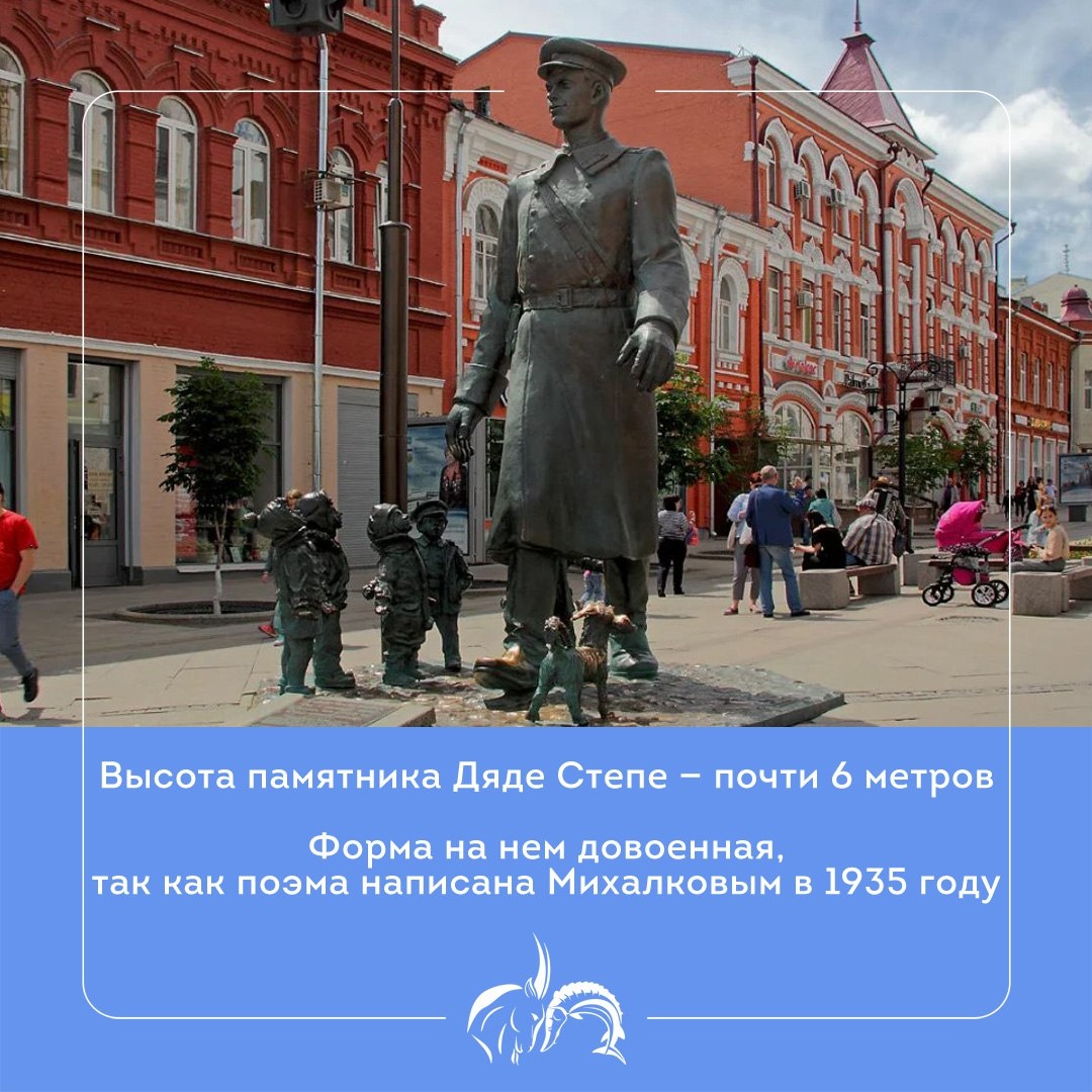 » 🏙 Коза и Стерлядь #заприметили такое, что трудно не заметить! Гигантскую скульптуру Дяди Степы. Памятник самому известном постовому СССР появился в Самаре еще в 2015 г. и сразу полюбился жителям и гостям города. Он стал одним из самых фотографируемых объектов! Это неудивительно от бронзового исполина исходит энергия заботы и справедливости. 📆 Дядю Степу придумал Михалков и описал в своей поэме, а скульптуру много лет спустя создал Зураб Церетели. Открытие памятника приурочили сразу к двум датам — 80-летию со дня написания поэмы и Дню полиции России. Кстати, деньги на него собирали обычные самарцы. Всего — 2,5 миллиона. Большой вклад внесли работники и ветераны системы МВД, а Церетели от отказался от гонорара. 🛤 Вышагивает «Каланча» на пересечении Ленинградской с Молодогвардейской неслучайно: в этом районе в 1970-е годы нес службу милиционер Олег Малинин. Он считался очень справедливыми и отзывчивым стражем порядка и мог бы запросто стать прототипом героя поэмы, если бы не родил