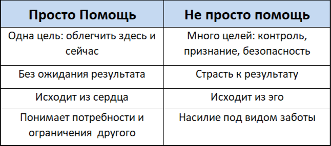 Не факт, понимаем ли мы разницу между Просто Помощью и эгоистическим сценарием «помощи» — которая обычно туго начинена личными мотивами, выгодами и страстями помогающего.