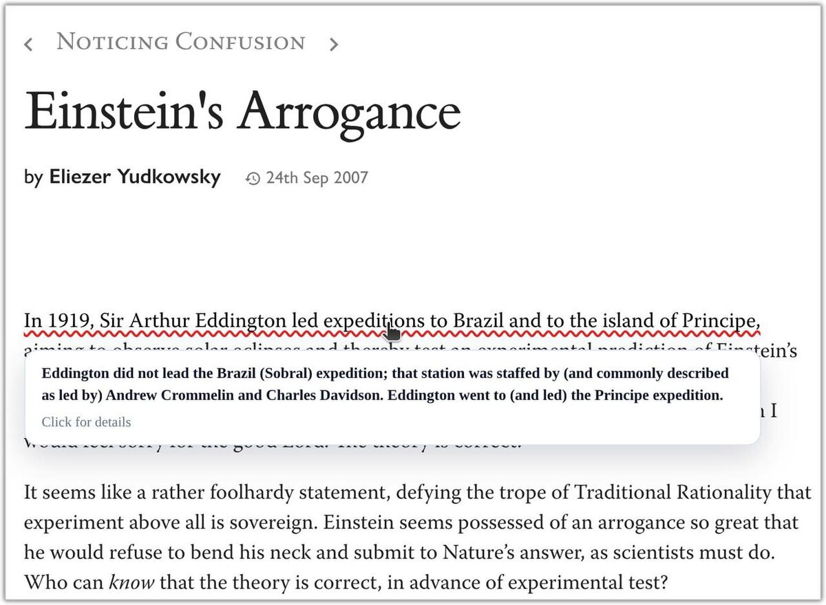 Оно использует API OpenAI, но все результаты кэшируются, поэтому пометки будут видны даже пользователям без доступа к нейросети. На данный момент расширение работает только на LessWrong, Substack и частично в X, но автор планирует добавить больше сайтов. Что делать с галлюцинациями и ошибками нейросети, предназначенной для их обнаружения, разработчик пока не уточняет. ➡️ Скачать можно здесь. NeuroFlux #фактчек #расширение #браузер #OpenAI #технологии #ошибки #галлюцинации #инновации #LessWrong #Substack