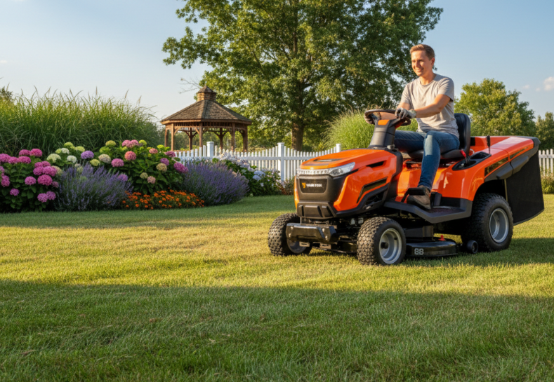 - Определитесь с параметрами заранее — оцените площадь участка, рельеф, наличие препятствий. Это поможет выбрать мощность, ширину деки и тип трансмиссии.