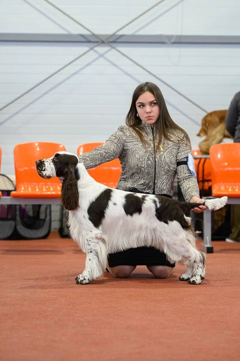 молодого члена нашей команды. Чемпионат Спаниель клуба 2026 Москва BREDBERY NEED MORE GOLD 🏆 (Veraspring Love You Always x Bredbery More My Stories) - Ньёрд Чемпионат клуба спаниелей Лучший кобель-юниор 🏆 Эксперт: Елена Снеткова Хендлер: я Груминг: Юлия Крейчман Заводчик: Английский спрингер спаниель. Питомник Bredbery.