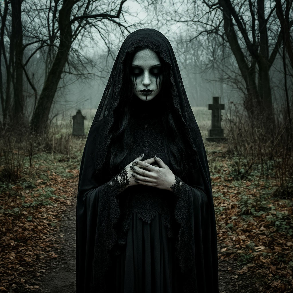 Когда она подошла к дому старухи, часы показывали 23:55. Дверь открылась сама, едва Кристина приблизилась. Внутри пахло травами и воском. Старуха уже ждала её — в длинном чёрном платье, с распущенными седыми волосами, падающими на плечи.