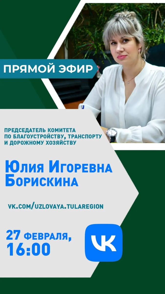 Завтра проведем прямой эфир с председателем комитета по благоустройству, транспорту и дорожному хозяйству Юлией Борискиной