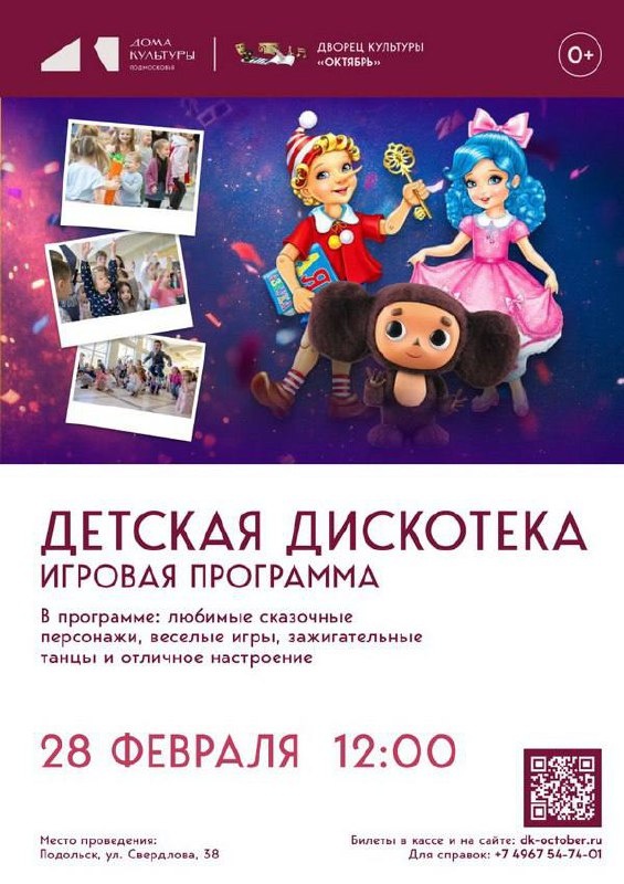 ✨ Детская дискотека в ДК Октябрь 💃🕺Игровая программа, где герои из любимых сказок научат ребят танцевать интересные танцы и сыграют с ними в веселые игры🥳 🚫 Возраст: 0+ 📆 28.02.2026 🕒 12:00 🏢 Дворец культуры «Октябрь» 📍 г. Подольск, ул. Свердлова, д.38 💰 Цена: 300 ₽ 🔗 Купить билет: https://dk-october.ru/2026/02/детская-дискотека-игровая-программа/ ⭐Поддержать канал голосом 🍰Где поесть в Подольске ✅ Мероприятия Подольск https://dzen.ru/id/66ed500f7b5671493eca3fd6 http://vk.com/podolsk_events http://dzen.ru/podolsk_events
