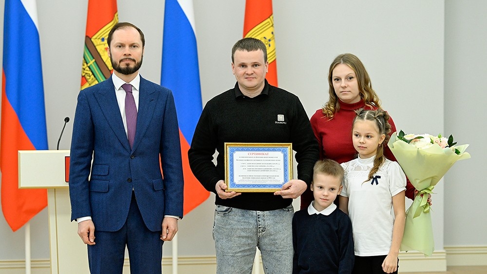26 февраля врио Губернатора Виталий Королев вручил сертификаты на приобретение или строительство жилья 14 молодым семьям из муниципальных образований Верхневолжья, среди которых – многодетные семьи и семьи участников специальной военной операции. "Хочу сказать спасибо всем вам за создание крепких и больших семей. Надеюсь, уже скоро вы отметите новоселье, используя жилищный сертификат. Желаю вам создать в своих домах уютную атмосферу, пусть семейный очаг согревает ваших детей, дарит счастье и силы для новых успехов и свершений. Хочется верить, что наши юные жители, глядя на ваш счастливый пример, сделают выбор в пользу большой, крепкой и дружной семьи", – сказал Виталий Королев. Глава региона отдельно поблагодарил многодетные семьи и семьи участников специальной военной операции – Польских из Твери и Лакисовых из Торжка. "Спасибо вам за ваши самоотверженность, служение, мужественность и решительность, а вашим жёнам, родителям, детям – за любовь, веру, надежду и ожидание", – обратился к
