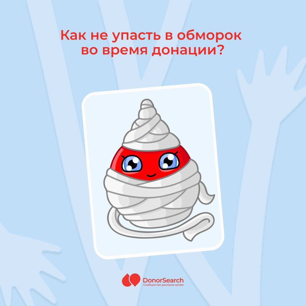 Переживания «вдруг закружится голова или случится обморок?» — естественная реакция на новое и неизвестное. Разберёмся, как подготовиться, чтобы чувствовать себя максимально комфортно. Почему может кружиться голова? Головокружение или обморок чаще всего — вазовагальная реакция на стресс, укол или вид крови. Риск выше, если вы голодны, не пили воду, не выспались или устали. Как подготовиться: • Выспитесь накануне. • За 48 часов откажитесь от алкоголя, за час до — от курения. • За 2–3 дня исключите интенсивные тренировки, аспирин, анальгетики и жирную пищу. Перед донацией: • Обязательно поешьте: лёгкий завтрак (каша, тосты, овощи, сладкий чай) без жирного. • За 1–1,5 часа выпейте 300–500 мл воды — это снижает риск головокружения. Во время процедуры: • Периодически напрягайте мышцы ног, ягодиц, живота («мышечная помпа»), сжимайте мячик. • Отвлекайтесь: разговаривайте, слушайте музыку, смотрите в сторону. • При первых признаках дискомфорта (потливость, потемнение в глазах, звон в уш