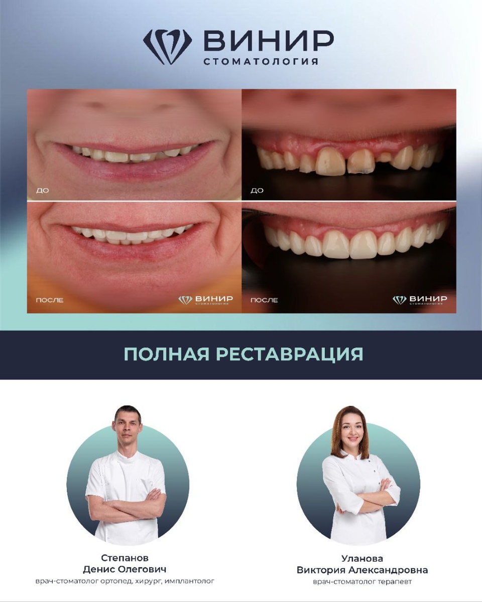 🌟 🔜 Полная реставрация зубов — это настоящее искусство, которое требует командной работы. 🔵На первом этапе врач-стоматолог терапевт, Виктория Александровна Уланова, провела терапевтическую подготовку полости рта. Этот этап является важнейшим фундаментом для дальнейшего восстановления эстетики и функциональности зубочелюстной системы 🔵Далее врач-стоматолог ортопед, Денис Олегович Степанов, разработал план лечения и провел протезирование, учитывая индивидуальные особенности нашего пациента 🔵В собственной зуботехнической лаборатории были изготовлены красивые, уникальные реставрации Никакого металла — только естественная красота и прочность! Запишитесь на прием через Telegram или Max ____ 📍Саратов, ул. Соколовая 10/16 С уважением и заботой, ВИНИР Стоматология грамотного выбора