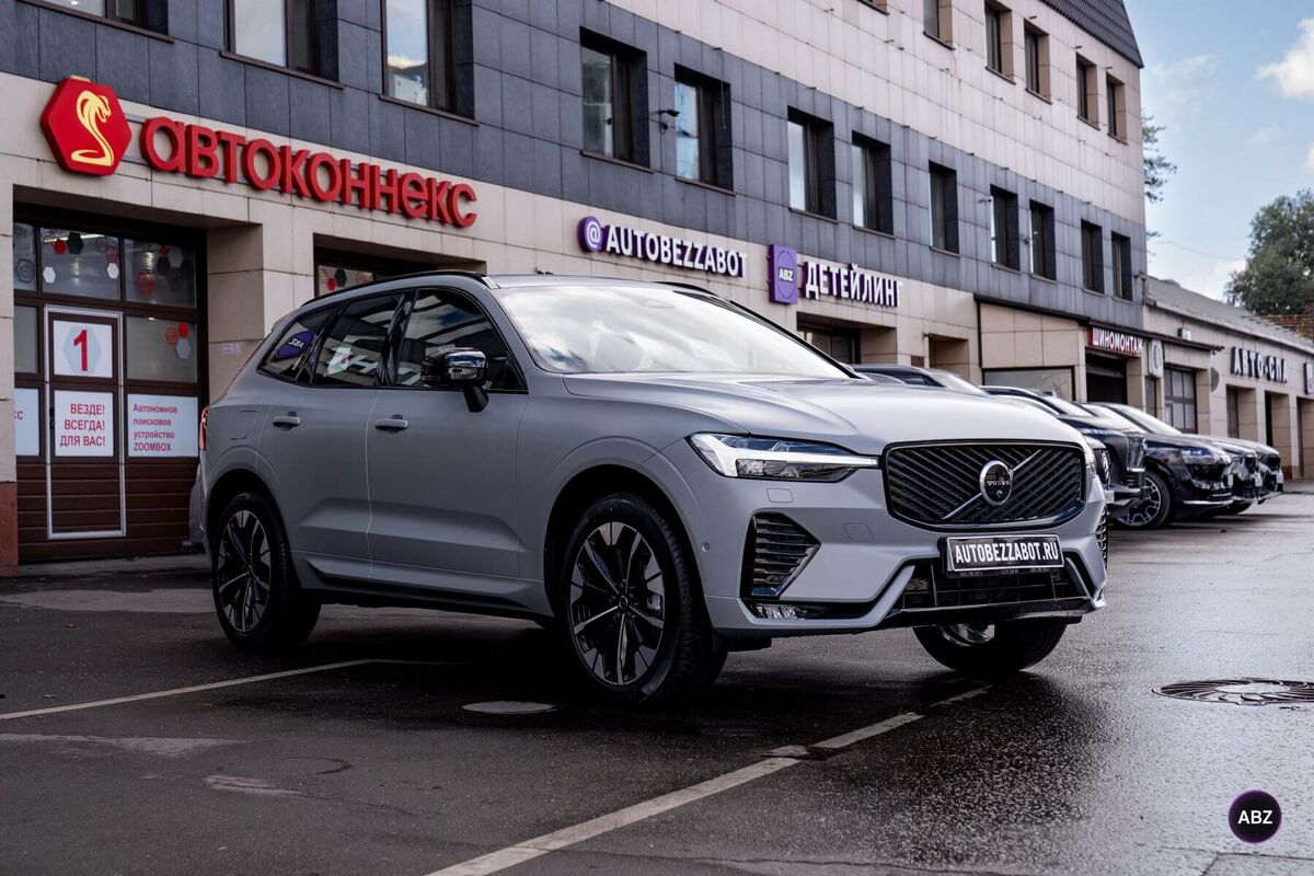 Volvo XC60 серого цвета — спокойный, продуманный кроссовер приехал к нам не так давно на защиту. XC60 — это про скандинавский подход к комфорту и безопасности. Несмотря на то что производство давно стало глобальным, в этой модели по-прежнему чувствуется философия бренда: спокойный дизайн, продуманная эргономика и внимание к деталям, которые действительно важны в повседневной эксплуатации. Этот автомобиль приехал к нам уже с пробегом — на кузове были небольшие сколы и пара аккуратных вмятин, поэтому решили не просто освежить внешний вид, а сразу комплексно привести машину в порядок для дальнейшей защиты. Начали с базы: тщательно вымыли автомобиль и подготовили поверхность к оклейке. Где это требовалось — аккуратно отполировали лак, чтобы убрать микрориски. Также устранили несколько небольших вмятин по технологии PDR — без покраски, просто аккуратно выправили металл. Перед оклейкой важно, чтобы кузов был ровным. После подготовки мы полностью оклеили кузов матовой полиурет