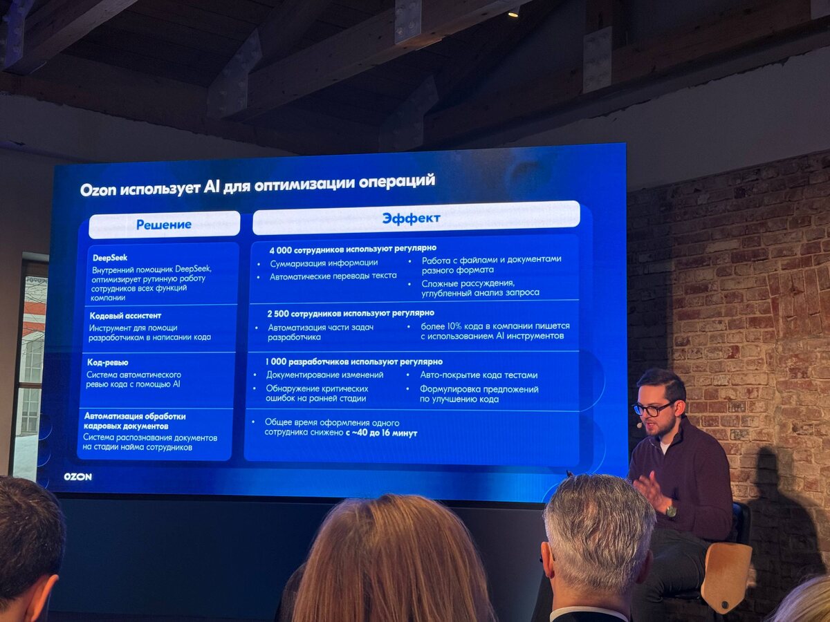 В кулуарах спрошу у ИТ-директора Озон, планируют лм они внедрять ИИ-агентов и делать более эффективные и безопасные решения, нежели открытые модели, тем более, китайские