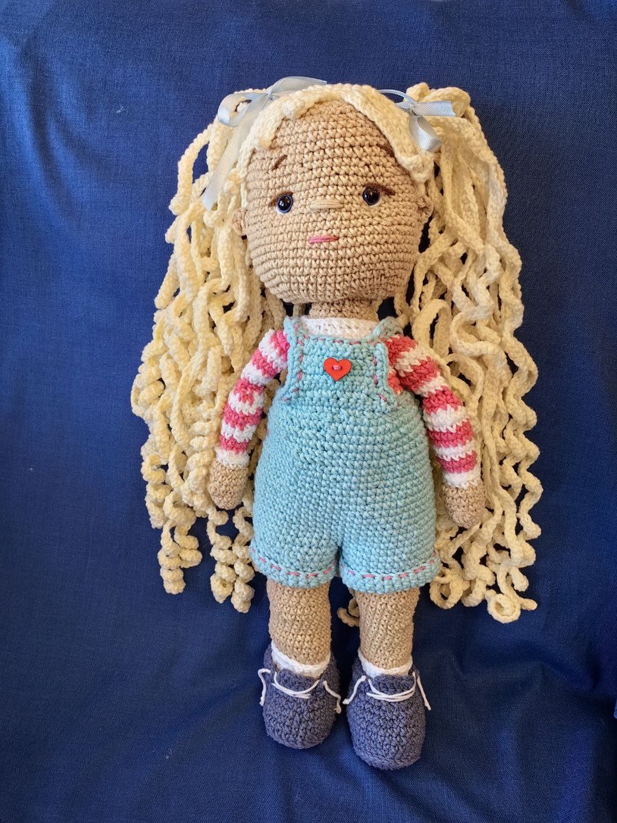 Хочу показать Вам мою новую работу - вязанную куклу Сонечку. Я связала куклу крючком. Самое сложное в кукле - это ботиночки с отворотами и ножки, самое длительное- это локоны. Локонов 34 , каждый из 120 воздушных петель, итого 4080 петель , обвязанных в обратном направлении 120 стобликами без накида. Причем нужно обеспечить завиток специальным придерживанием нити. Вязание- это очень милое и домашнее занятие. Можно вязать с детьми, они быстро схватывают. Всегда можно связать подарок своими руками- брелок, игрушку. #diy #игрушки #вязанныеигрушки #амигуруми #вяжемсвоимируками #вяжемвместе #вяжемдетям #детскаяигрушкакрючком #вязаниекрючком #игрушкаподарокдетям