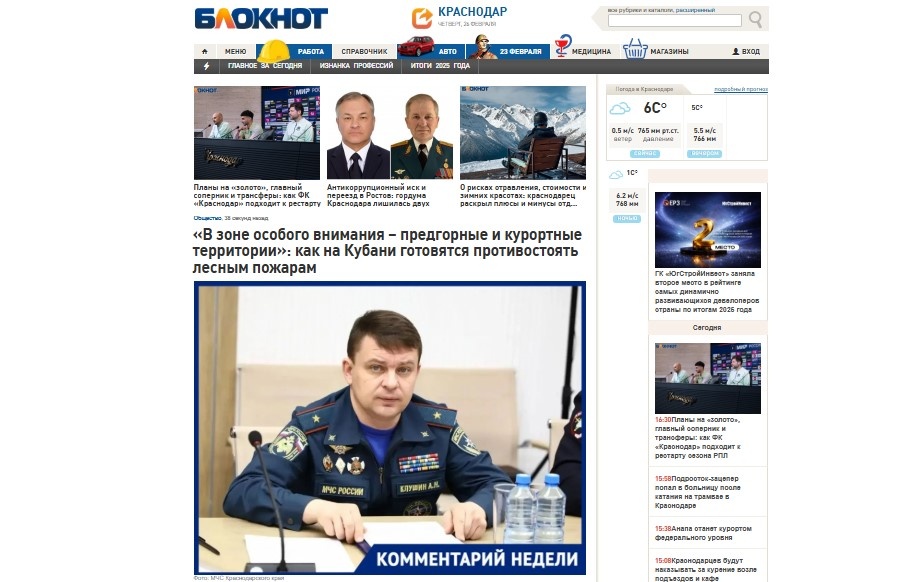 На днях ТАСС опубликовало интервью с главой МЧС России Александром Куренковым о грядущем лесопожарном сезоне. В нём обсуждались общие тенденции и готовность федерального ведомства к предстоящему периоду. Чтобы уточнить ситуацию конкретно для Краснодарского края — с его особыми климатическими условиями, высокой рекреационной нагрузкой и спецификой ландшафтов — мы побеседовали с Алексеем Клушиным, начальником Главного Управления МЧС России по Краснодарскому краю.