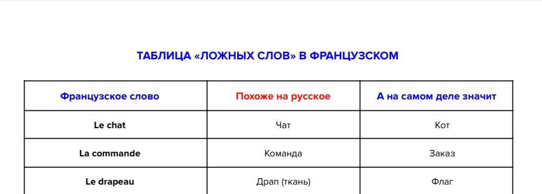 Знаете этот момент, когда вы уверены, что слово значит одно, а француз понимает совсем другое? 😅 Вот только несколько примеров: 📰 Le magazine — не магазин, а журнал (магазин — le magasin) 👔 Le patron — не патрон, а шеф / босс (патрон для стрельбы — la cartouche) 🧩 Le casse-tête — не кастет, а головоломка / проблема (кастет — le poing américain) 📥 Чтобы вы не попадали в ловушку, я собрал всё в один файл • Более 20 слов с переводами и пояснениями • Самые смешные и коварные примеры • Удобный формат — можно сохранить, распечатать, держать под рукой 👉 Забрать файл можно в боте бесплатно Сохраняйте себе и делитесь с друзьями, которые тоже учат французский. Пусть эта таблица станет вашей страховкой от неловких ситуаций 😉 А с какими «ложными друзьями» встречались вы? Делитесь в комментариях, пополним коллекцию вместе! 👇