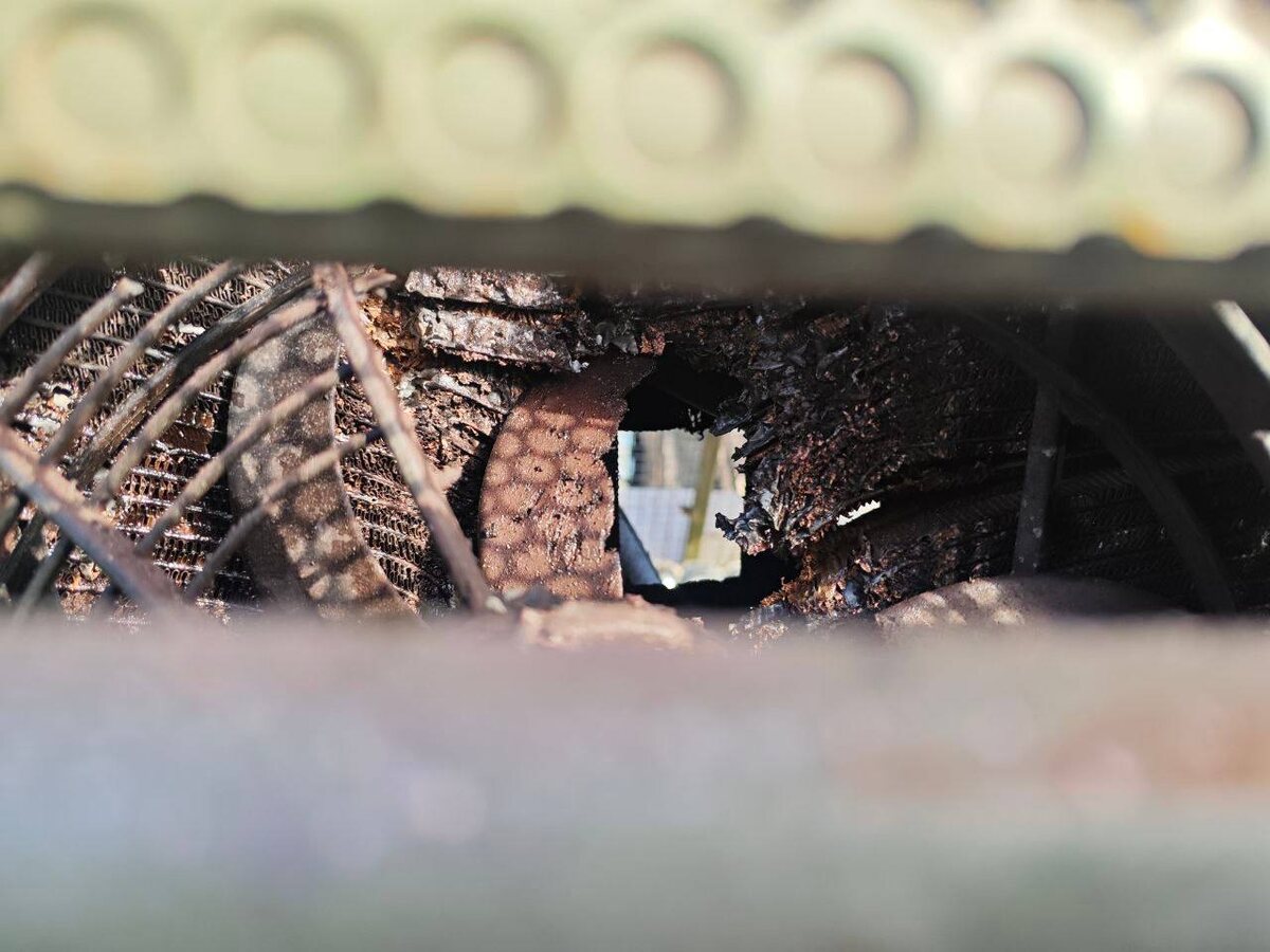 Взгляд на мир через пробитый осколком радиатор эвакуационного багги Алабай