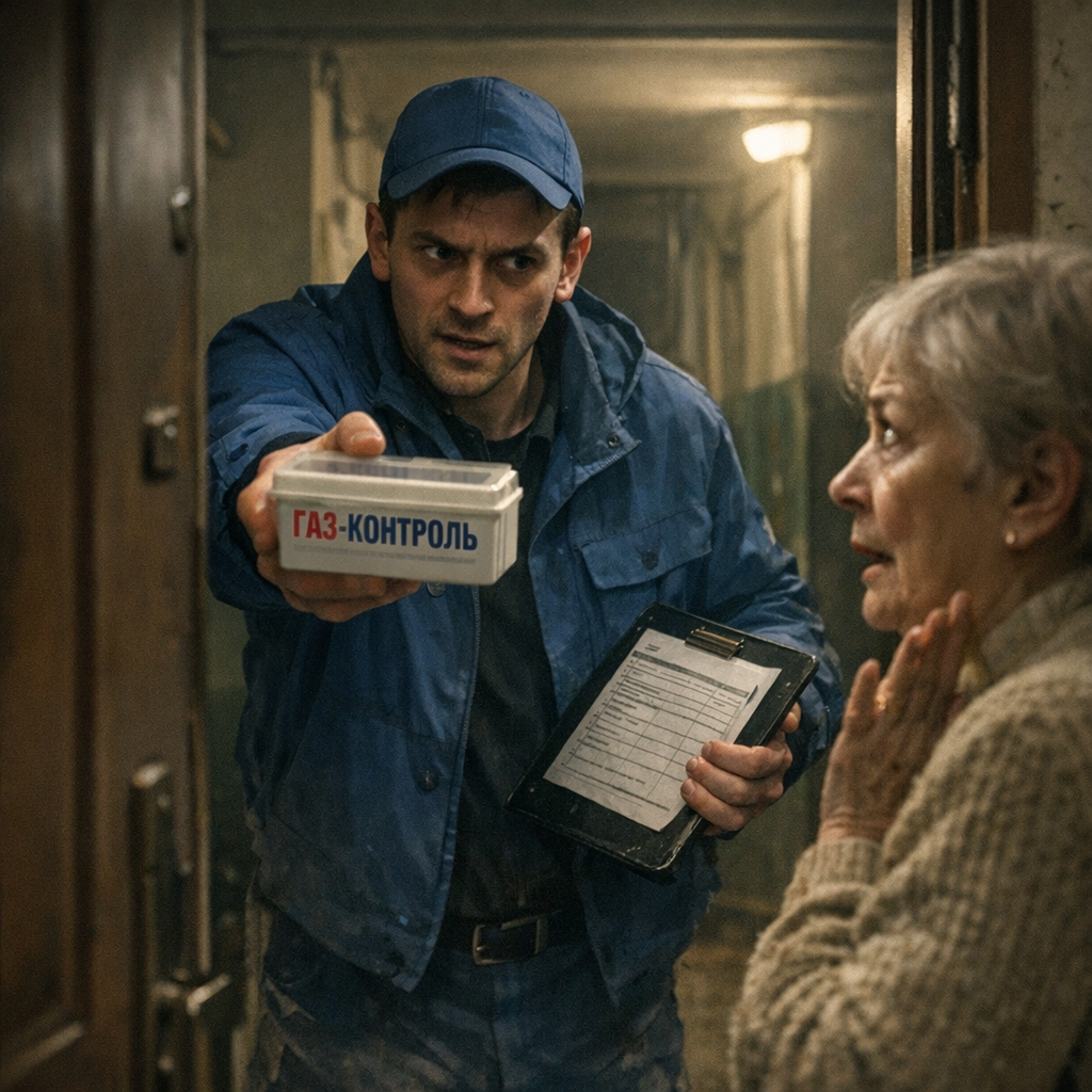 «У вас утечка, — говорит он. — Но главное не это. Согласно постановлению от 2026 года (называет выдуманный номер), вы обязаны установить газоанализатор с клапаном-отсекателем. Иначе — отключение газа сегодня же и штраф 30 тысяч».