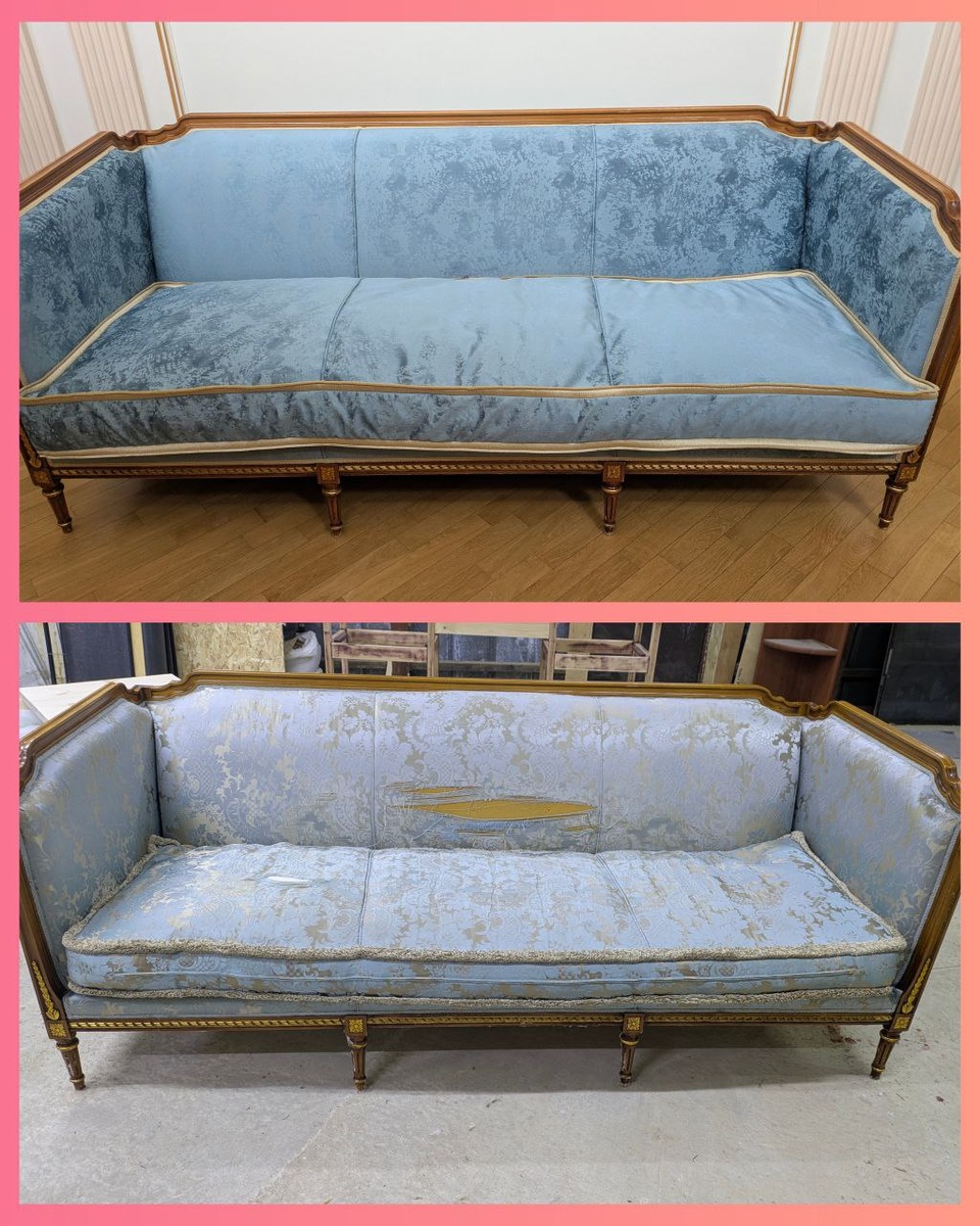 Одной из первых моделей дивана, появившихся в Западной Европе, является «Маркиза» (la Marquise), очень популярная при дворе французского короля Людовика XV. Она была больше похожа на кресло с довольно низким сидением, но при этом достаточно широкое, чтобы вместить двух человек (по этой причине ее называли tete-à-tete). Обновили диван в стиле барокко в качественный велюр лазурного цвета. MR. Обивка - сделать невозможное возможным! #мебель #допосле #дом #mrobivka #мистеробивка