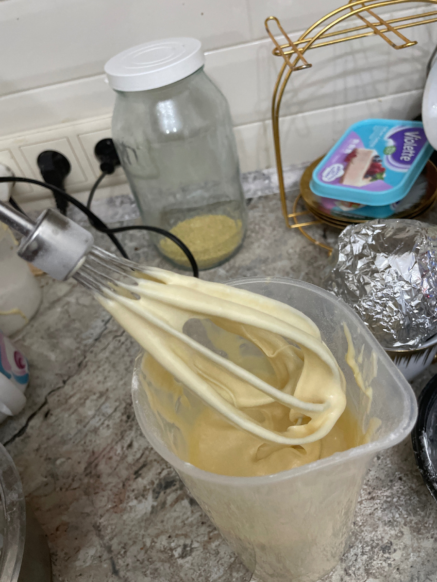 С утра начнем оформлять нашу молочную девочку. Для этого приготовим крем,должен быть более плотный.
