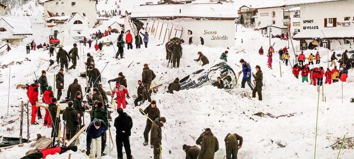 Собственно, даже этого было бы недостаточно для катастрофы. Компьютерное моделирование показало, что поток должен был затормозиться, не дойдя до деревни. Но вмешался еще один фактор — сильнейший (до 120 км/час) ветер. Он разогнал лавину до огромной скорости, и на улицы Гальтюра ворвалось снежное цунами!