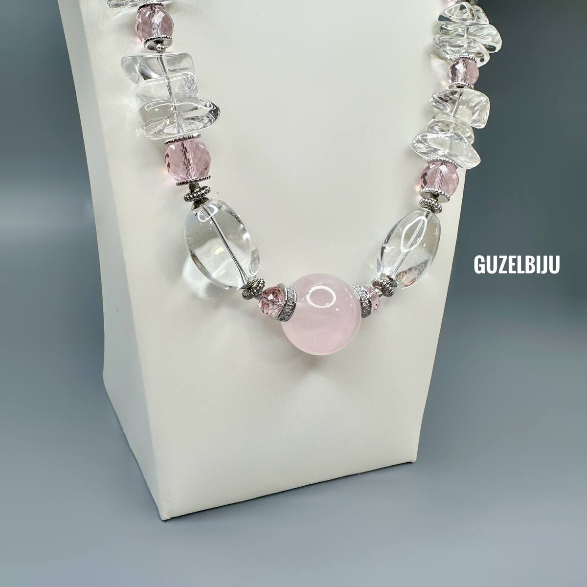 В наличии ожерелье, розовый кварц и Натуральный горный хрусталь (поставщик Россия), 50 см, 5500 руб.