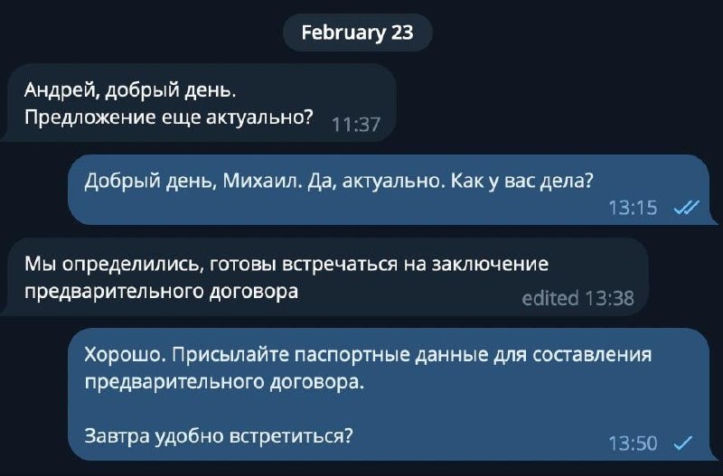 Сделка с землей уложится в 4 месяца? Неужели новый рекорд? Напомню, в конце декабря появилась возможность зайти в новую сделку с моим знакомым. По плану было выкупить участок в МО, провести работы по его расчистке и делению, после чего продать каждый из участков. К концу января почти все работы были закончены. Параллельно стартанули продажи. На днях партнер сообщил, что по каждому из двух участков внесены задатки. Выход на сделку и там и там в марте. Причем интересно, что второй покупатель проснулся после того, как цену подняли на 1 млн. Держим кулачки, что все пойдет по плану. Но предварительно все идет более чем гладко. Как только сделка закончится - обязательно поделюсь всеми цифрами. 📍Смирнов Дмитрий | Опыт инвестора