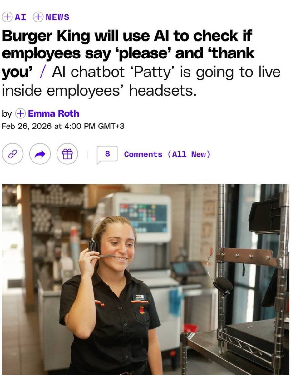 В ресторанах Burger King в Америке нейросеть теперь контролирует работу каждого сотрудника