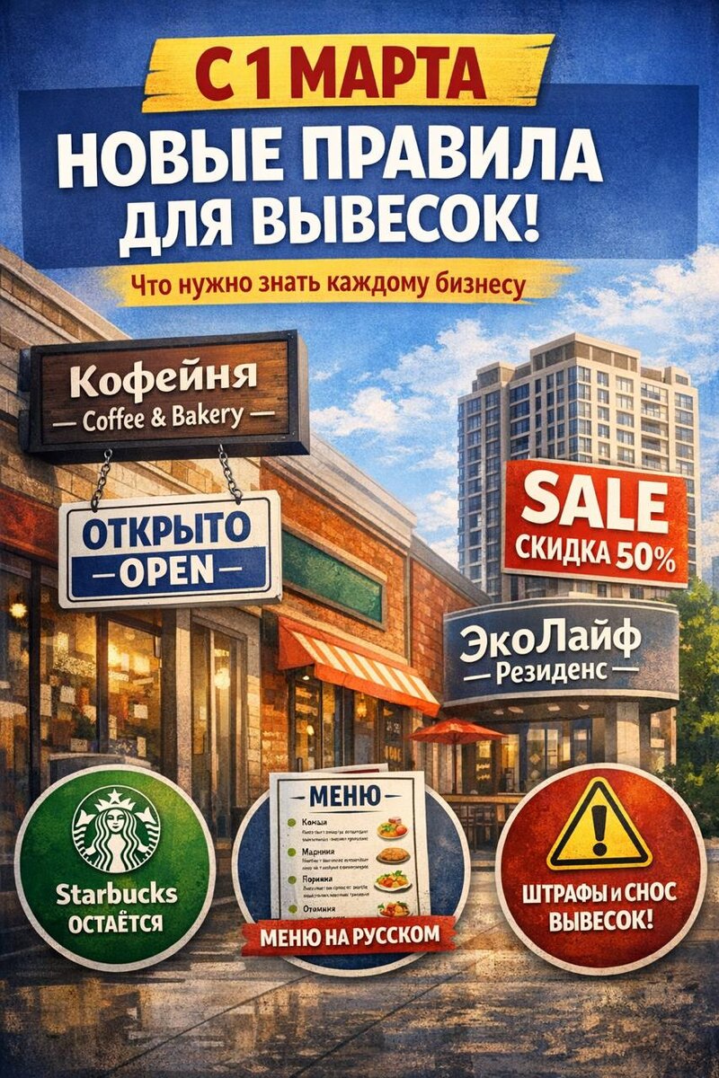 🔤 С 1 марта — новые правила для вывесок: что нужно знать каждому бизнесу