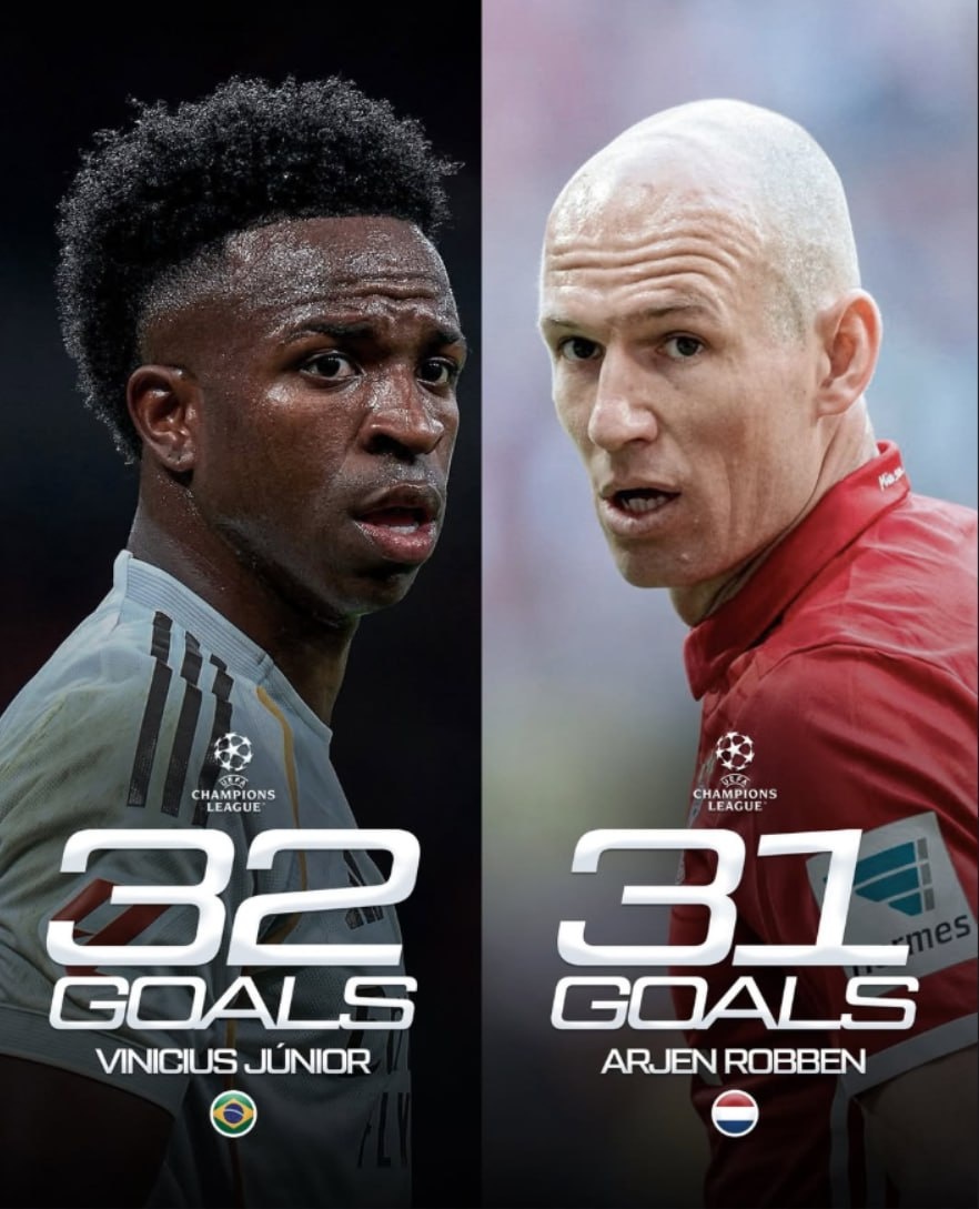 Вини (32) теперь обогнал Роббена (31)по голам в ЛЧ