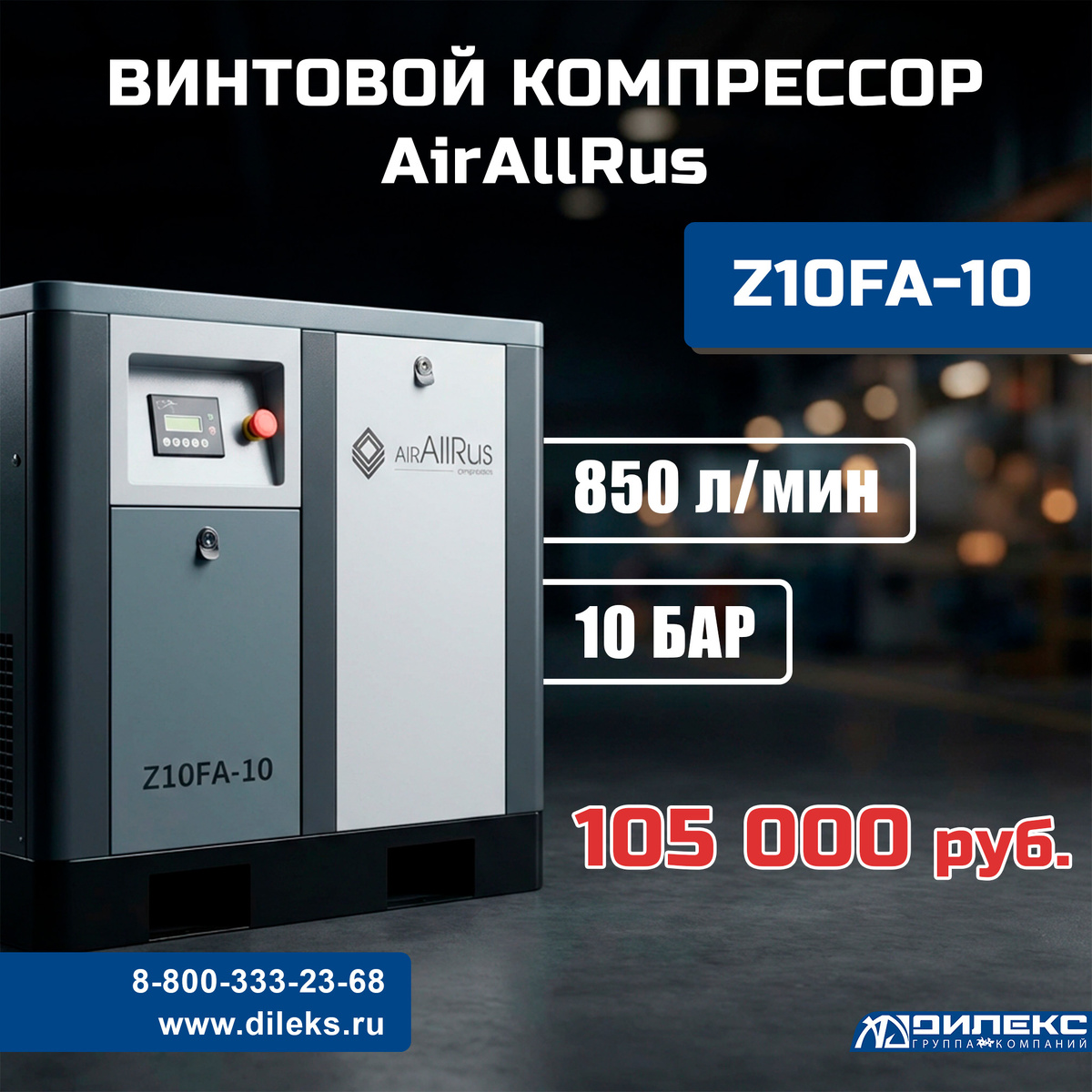 🔧 Винтовой компрессор AirAllRus Z10FA-10 — надёжность в каждом кубометре воздуха