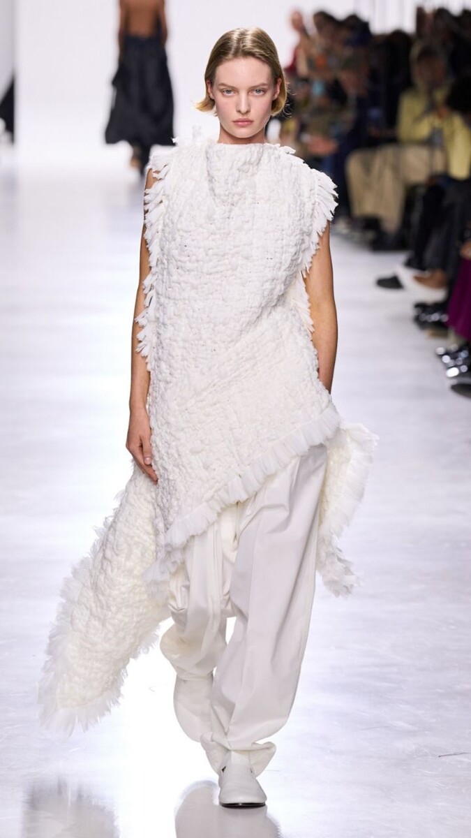 В одной из статей мы разбирали тему белого: белого снега, белого цвета и его трансляции. Но белый может быть разным! Холодным, теплым, гладким, фактурным, мягким, жестким… Я покажу вам, насколько же интересен этот мир, и насколько каждый ньюанс влияет на восприятие. В данном случае я про оттенки и фактуру. Но в общефилософском смысле жизни, деятельности и отношений это правило работает также. Кстати, наблюдательность в моде тренирует и общую наблюдательность. Мы говорили о холодном белоснежном оттенке, и на фото были представлены гладкие ткани. Посмотрите в галерее, что произойдет, если мы добавим фактуру. Да, образ станет мягче, уютнее, контактнее (также как и интерьер, если добавить белый плед с длинным пушистым ворсом, отделать стену белыми пробковыми панелями вместо гладкого холодного мрамора и т.п.). То же самое, если взять более теплый оттенок белого, например, молочный, слоновую кость или цвет года по версии Pantone - "cloud dancer" ("облачный танцор"). Почему такой "белый" тепл