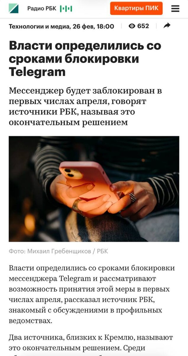 ⚠️ Стала известна дата блокировки Telegram - первые числа апреля.