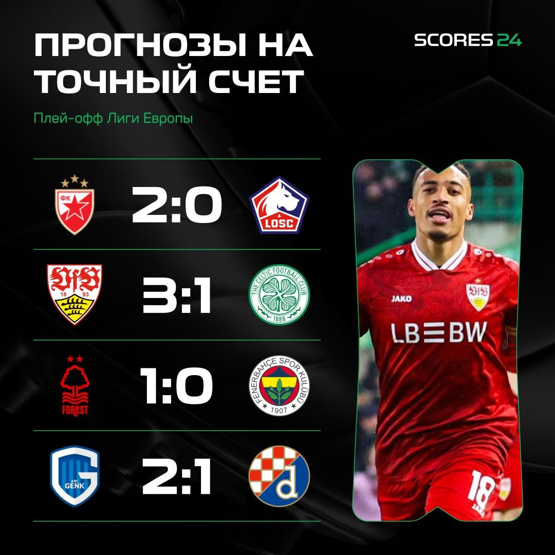 🆓 Если хочешь загрузить на один из вариантов без риска, то забирай ФРИБЕТ ДО 15000 РУБЛЕЙ ОТ МЕЛБЕТ ⬇️ 👉 https://l.scores24.live/scores24-melbet Как думаете, где зайдет ТС? 👀 ❤️ — «Црвена Звезда» - «Лилль» 🔥 — «Штутгарт» - «Селтик» ⚡ — «Ноттингем Форест» - «Фенербахче» 👍 — «Генк» - «Динамо Загреб»