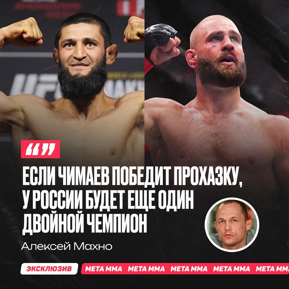 Боец ACA Алексей Махно высказался о возможном бое Хамзата Чимаева и Иржи Прохазки за титул UFC в полутяжелом весе. «Этот бой – отличный маркетинг. Чимаев – одна из самых ярких звезд UFC, поэтому делать ставку на него с точки зрения бизнеса более чем логично. С другой стороны, есть яркий Прохазка, который любит зарубиться. Это бой для Хамзата. Если все пройдет так, как должно пройти, то у России будет еще один двойной чемпион. Да, на меня набросятся и скажут, что Чимаев не из России. Он – чеченец, Чечня – республика, входящая в состав Российской Федерации. Всегда есть умные люди, которым есть что сказать. У России будет еще один двойной чемпион. Костя Цзю всю карьеру провел в Австралии, жил там. Какая разница?» – сказал Махно в интервью MMA.Metaratings.ru. ❓ Чимаев станет двойным чемпионом? 🔥 — Да, заберет второй пояс 🤷♂️ — Не будет такого 👊 Подпишись на Meta MMA | Meta MMA в MAX | Наш канал в ВК