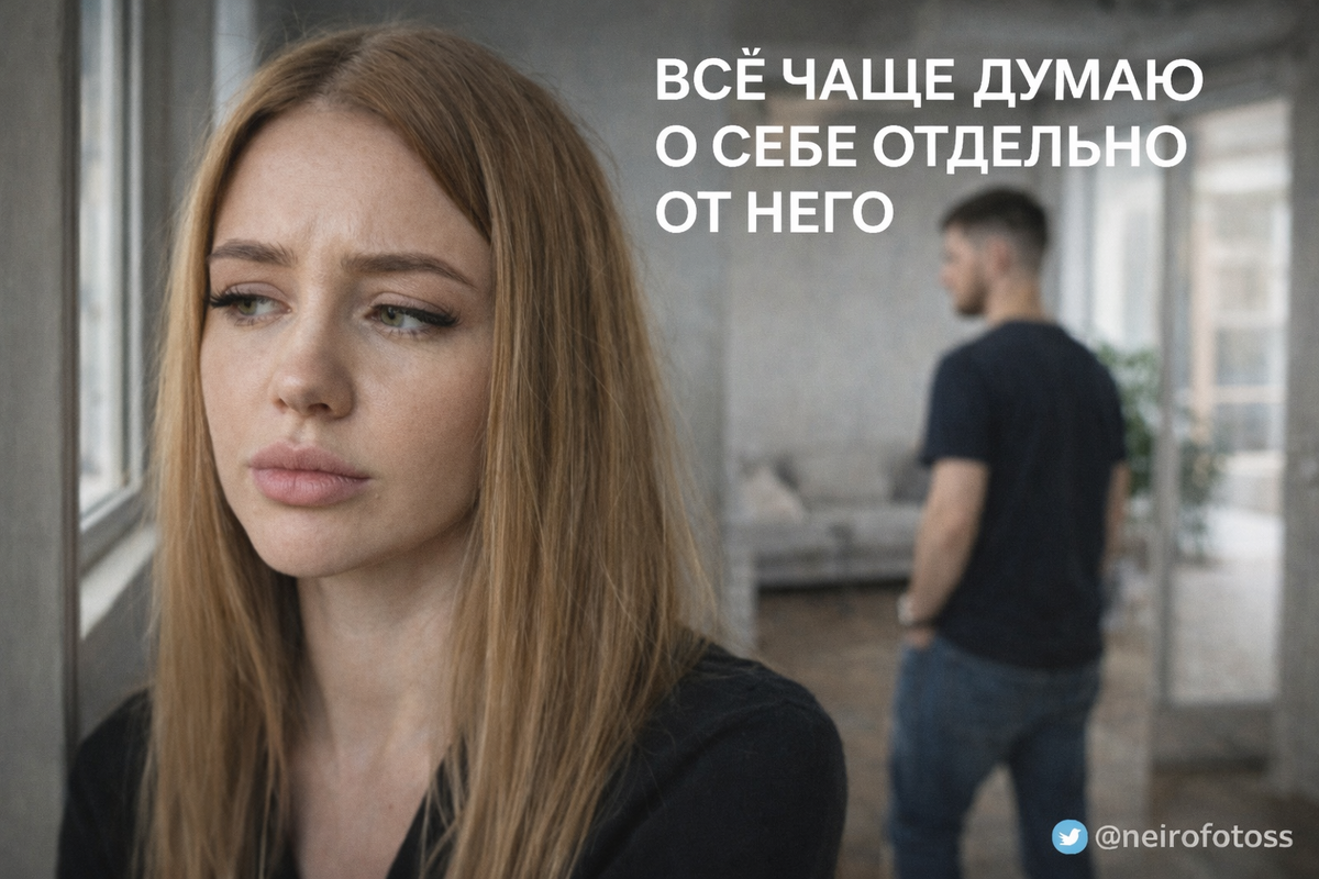 Позже дома он спрашивает, что ты хочешь на выходных. И ты отвечаешь нейтрально, без искры. Потому что в голове уже есть свой вариант, отдельно от него. Ты не рассказываешь об этом как о конфликте. Ты просто замечаешь, что мысль о себе отдельно стала приходить чаще, чем мысль о вас. И это не про свободу. Это про то, что связь будто перестала быть местом, где ты строишь жизнь вдвоём.