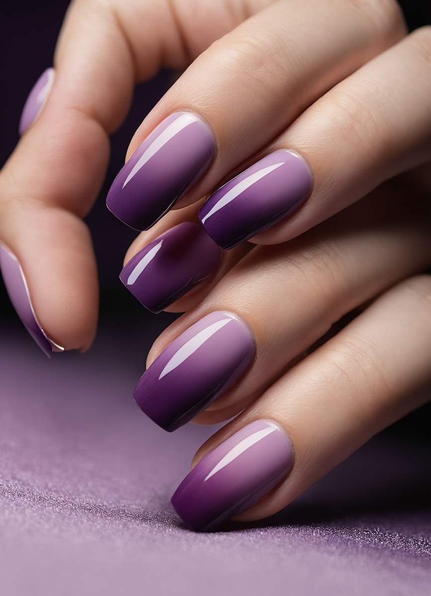 Фиолетовые оттенки маникюра с эффектом омбре завораживают своей глубиной и многообразием. Этот цвет ассоциируется с загадочностью, креативностью и элегантностью, что делает его идеальным выбором для различных мероприятий. Фиолетовый способен подчеркнуть индивидуальность, а его разнообразие от нежных лавандовых до ярких пурпурных позволяет создавать уникальные образы, подходящие как для повседневной носки, так и для вечерних выходов.