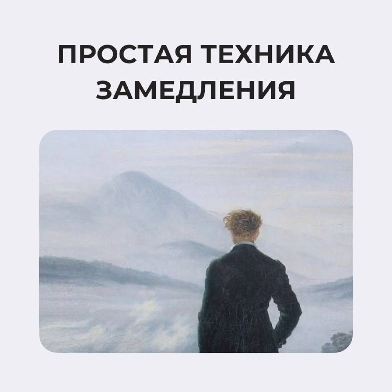 «Всё время куда-то спешу» «Иду по узкому тротуару, и если кто-то впереди идёт медленнее меня, меня прям распирает, а если на эскалаторе кто встал — хочется ему по башке надавать» «Ощущение, что не успеваю жить» ⬆️Это признания людей, захваченных ежедневной суетой. В День неторопливости мы предлагаем вам сделать паузу в бешеном ритме ежедневных дел и переживаний. Поможет в этом простое упражнение. Инструкции по его выполнению смотрите на карточках. В этом посте мы предложили вам попробовать замедлиться с помощью простой дыхательной техники. На самом деле, существует множество подобных техник. Почему они работают? Скорее всего, вы замечали, что человек в ситуации стресса и волнения часто дышит, его дыхание поверхностное и прерывистое. А когда мы находимся в состоянии покоя, всё иначе: дыхание становится глубоким, ритмичным и медленным. Возвращение к размеренному дыханию в момент стресса действительно помогает расслабиться. Это подтверждают многочисленные исследования. Учёные выяс