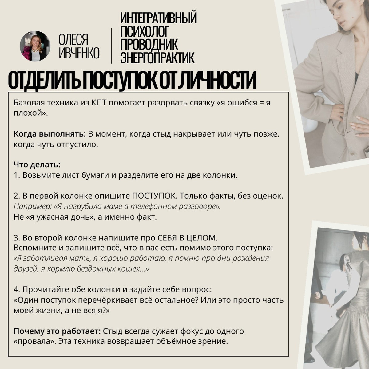 Подготовила три бережные и эффективные техники для самостоятельной работы со стыдом. Они не требуют специальной подготовки, но при этом работают глубоко. Техника работают мягко и безопасно. Но если стыд очень глубокий и давний, одного раза будет мало. Это как гигиена — чем чаще возвращаете себе опору, тем свободнее становится дышать. Эта практика не про «переосмыслить историю», а про реальное движение энергии, поля и телесных зажимов. Её легко встроить в день, и она работает на том уровне, где стыд реально живёт — в теле и поле человека. Эти техники можно делать в любом порядке и с любой частотой. Главное — с разрешением себе чувствовать, а не «исправляться». Потому что стыд лечится не борьбой, а принятием.