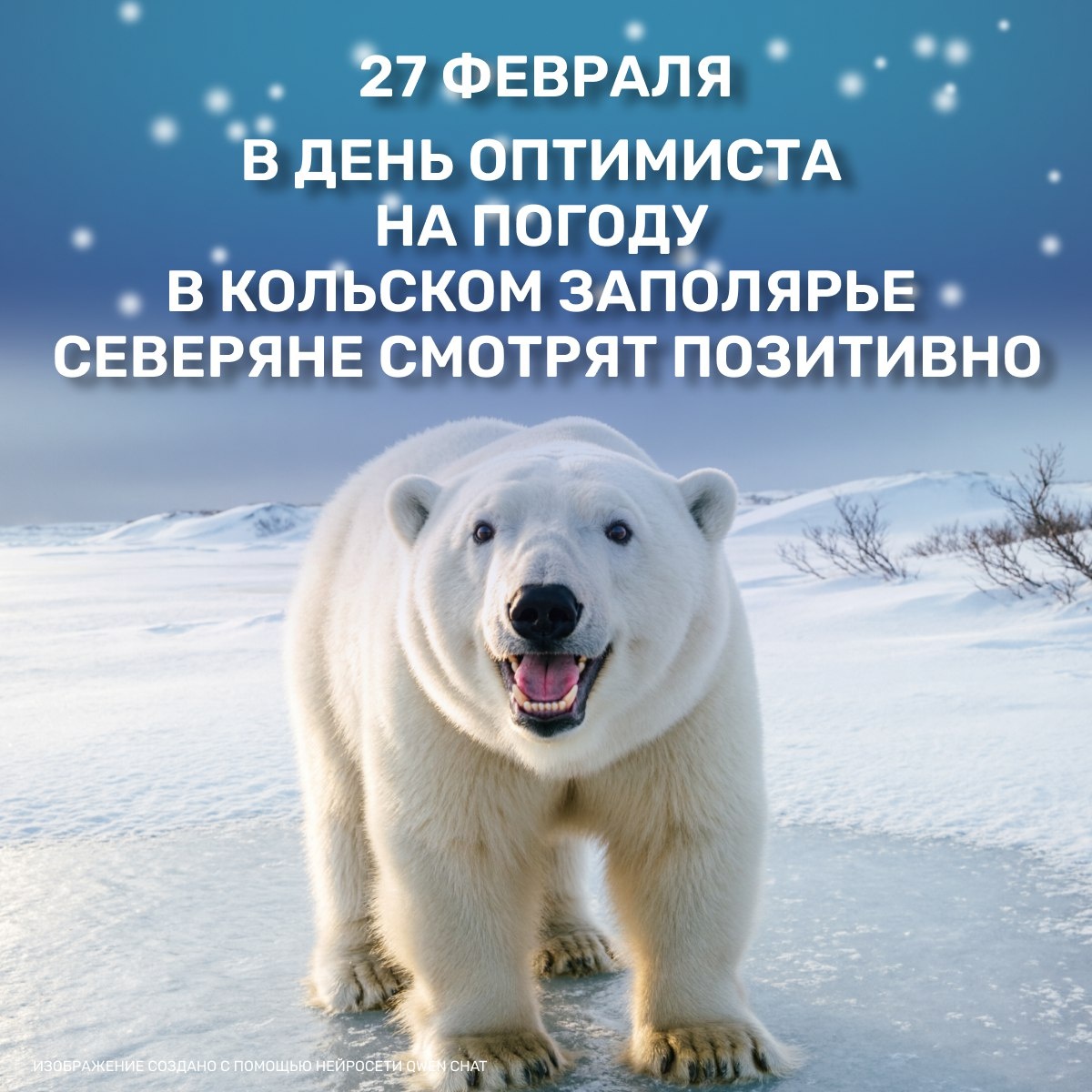 😃 В Мурманской области 27 февраля, в День оптимиста и День полярного медведя, ожидается облачная погода и местами умеренный снег