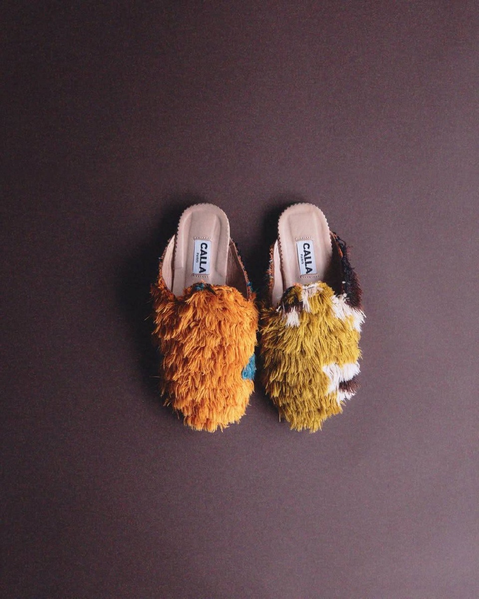Лимитированная серия бабуш CHELEBI × CALLA создана вручную французскими мастерами из винтажных ковров. Это не принт и не стилизация, а реальный фрагмент ковра, почти переносной элемент интерьера