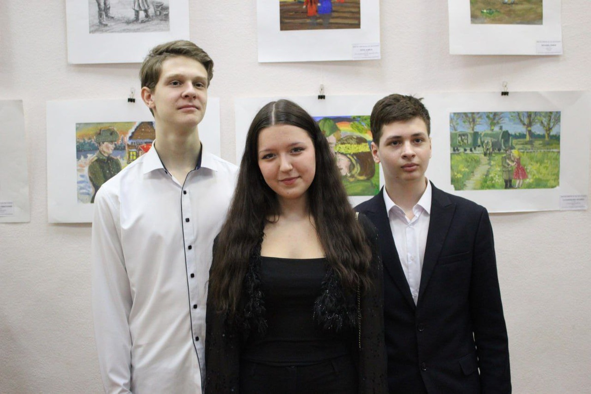 Д.Д. Шостаковича, собрала множество гостей в Центральной городской библиотеке имени Ф. А. Семенова в рамках литературно-эстетического проекта «Библиогалерея». Событие, овеянное духом сразу двух праздников — и Дня защитника Отечества, и приближающегося Женского дня, — состоялось при поддержке комитета культуры и туризма города Курска. Будущие художники использовали гуашь, карандаш и гелевые ручки. «Седьмая симфония», «Радостная встреча», «Весна, 45-го», «Журавли», «Мама, я вернулся», «После долгой разлуки», — за каждым штрихом в этих и других работах, объединенных военно-патриотической темой (всего их более 20), стоит огромный труд учеников, преподавателей и руководства школы. Как отметил на вернисаже директор ДШИ №5 Александр Павлов, дети и педагоги школы — большие труженики, и впереди у них новые творческие успехи. Преподаватель высшей квалификационной категории ДШИ №5, премиант главы администрации города Курска Лариса Сахн-Вальд поделилась сокровенным с юными читателями библиотеки