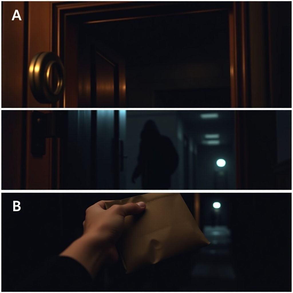 Пауза. Потом слышу — шорох. Пакет поставили. И шаги — медленные, тяжелые — в сторону лифта.