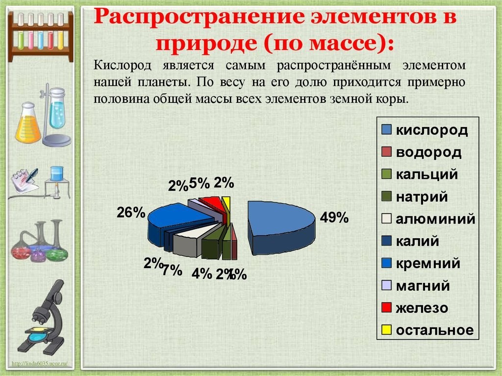 Знаете ли вы, что самый распространённый элемент в земной коре — это кислород? На него приходится почти половина массы (49%) всех горных пород, минералов и почв, составляющих нашу планету. 📌 Распределение элементов в земной коре: • 💨 Кислород (O): 49% — входит в состав почти всех минералов • 🔘 Кремний (Si): 26% — основа песка и кварца • 🧪 Алюминий (Al): 7% — самый распространённый металл • ⚙️ Железо (Fe): 5% — ядро планеты, но в коре тоже есть • Другие: кальций, натрий, калий, магний — оставшиеся 13% 🔬 Где именно содержится кислород: • В оксидах (соединения с металлами) — например, гематит (Fe₂O₃), корунд (Al₂O₃) • В силикатах — главных породообразующих минералах (кварц SiO₂, полевые шпаты) • В карбонатах — известняк (CaCO₃), доломит • В воде, которая пропитывает горные породы #кислород #земная_кора #геология #элементы #наука 💫 P.S. Интересно, что кислород в атмосфере — это лишь малая часть (около 0,35% от всей массы планеты), а в ядре Земли его почти нет. Весь основной запас