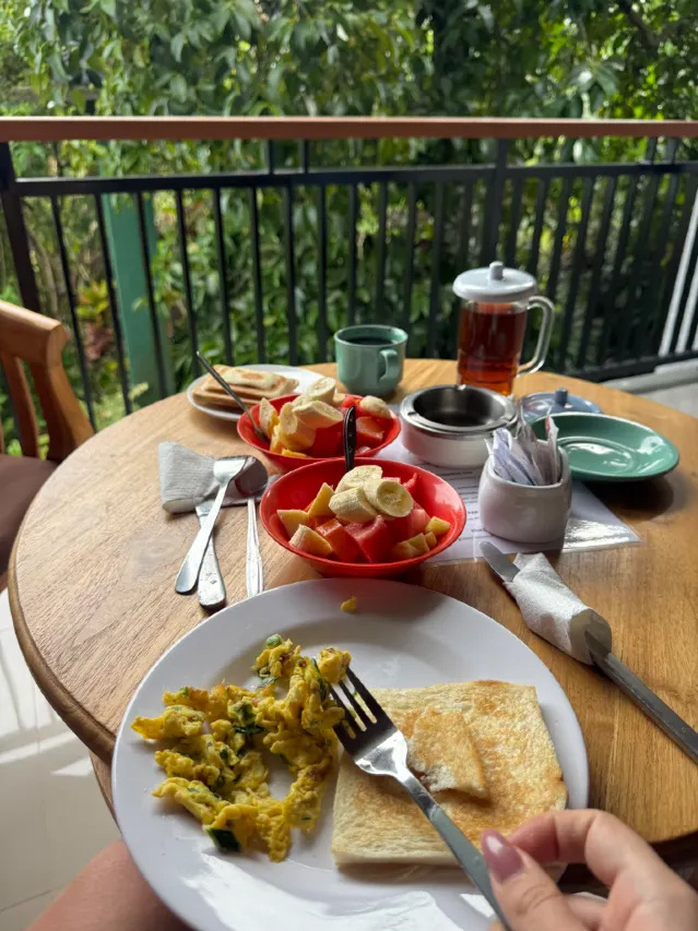 Замечательные и добрые хозяева. На завтрак тут подают яйца, сосиски, хлеб с маслом и джем. Из фруктов очень вкусная папайя, ананас, бананы, арбуз. Самое топовое тут это наисвежайший кофе.