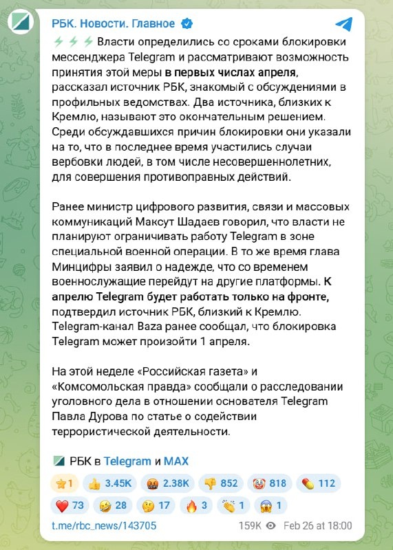 , столь же несостоятельна, как и все прочие ранее заявленные причины. И вот почему. В Telegram действительно занимаются вербовкой населения для совершения терактов и диверсий, но делают это не потому, что телега плохая, а потому она крайне популярна среди российской аудитории. Рыбу удят там, где она есть. Как только богоспасаемый национальный мессенджер Мах начнет обрастать действительно активной аудиторией, а не загнанной туда по разнарядке, то вербовщики моментально перетекут туда и начнут вербовать население уже через Макс. Все это мы уже наблюдали совсем недавно с мошенниками, которые тоже успели побыть причиной для блокировки звонков через неподконтрольные государству мессенджеры. И вот сюрприз - эти мошенники завелись и в Максе, информацию о чем государственные органы сейчас стыдливо подтирают. Кроме того, после "окончательной блокировки" Telegram, основная часть его аудитории все равно не перестанет им пользоваться, а перейдет на сервисы обхода блокировок, как это было с др