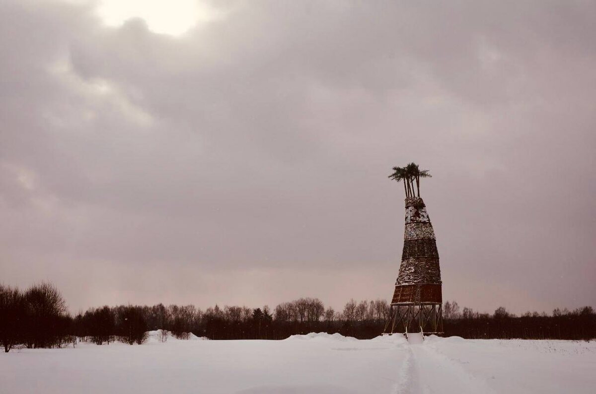 Пальмы в снегу. Мавзолей мечты Архитектор Тотан Кузембаев Строительство Норвекс Фестиваль Архстояние 2022, тема «Счастье» 👀 Это 29-метровая изогнутая башня, возведенная уровнями из различных материалов: дерева, костей, глины, кирпича и пластика. Двигаясь от природных материалов ввысь, мы приходим к искусственным - 1600 мятым пластиковым бутылкам, искусственным цветам и бутафорским пальмам, видимым почти из любой точки «Никола-Ленивца». "Мавзолей мечты — это личное переживание. Устраивая себе удобство, мы много что уничтожаем. Я свою вину чувствую, как архитектор. Любое произведение — это насилие над природой. Мавзолей — это мысль об этом, не жизненный итог. Мусора много, его надо использовать. Это мавзолей человеческой жадности и глупости. Если зайти изнутри в него, то видно небо", — рассказал Тотан Кузембаев. Подробнее