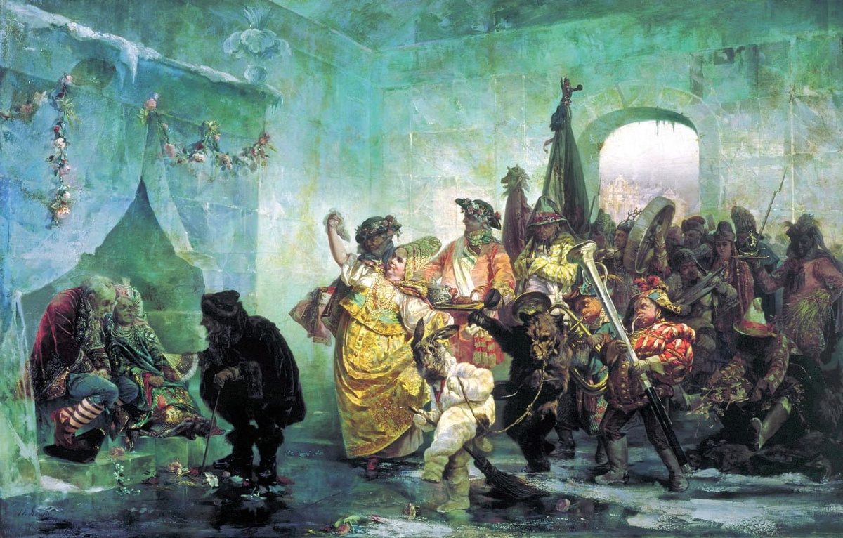 Всё Бенуа" Вчера у картины Якоби меня как к полу прибило Большое тёмное полотно "Ледяной дом". Я подошла, потому что сюжет любопытный: толпа ряженых, огни, странный заяц, два, как будто мёртвых человека Что-то нарядное и что-то невыносимое одновременно, как бывает, когда праздник устроен за счёт чьей-то кожи. Я не знала этой истории. Полезла гуглить прямо в зале. И не смогла остановиться Князь Михаил Голицын. Род, при звуке которого половина Петербурга выпрямляла спину. Уехал в Италию, сменил веру, женился. Вернулся. Анна Иоанновна смотрела на него, как смотрят на вещь, упавшую в грязь. С прищуром: можно ли ещё использовать? Решила, что можно. Шутом Ему выдали колпак, дали кличку квасник. Велели разносить квас. Квас плескался на пальцы, кожа на костяшках лопалась тонкими белыми линиями. Как на фарфоре, из которого он когда-то пил в Италии. Каждый, кто брал у него кружку, знал, чьи это руки. В этом был весь смысл Его сажали обнажённым на куриные яйца, и он должен был изображат