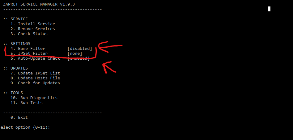 Иногда этого достаточно. ВАЖНО: именно здесь у меня всё и ломалось. 1. Запустите service.bat от имени администратора 2.Отключите: ❌ Game Filter ❌ IPSet Filter 3.Перезапустите zapret (ремувните и заново установите сервис) ИЛИ просто перезагрузите компьютер 👉 Этот способ помог лично мне, но в связке с пятым пунктом. 1.Переустановите Easy Anti-Cheat (Он находится в папке с игрой)