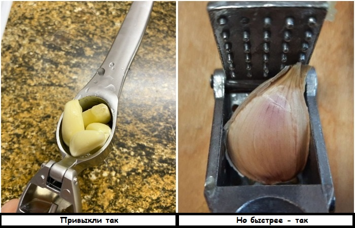 А вы тоже кладете в пресс уже очищенный зубчик чеснока? Оказывается, шелуху можно не снимать. Просто положите чеснок внутрь пресса и надавите на него, как обычно. В итоге кожура останется внутри, а внутренняя часть уже измельченная выйдет через отверстие. На первый взгляд это может показаться мелочью, но на деле существенно экономит время, особенно, когда вам нужно не пару зубчиков, а большая головка чеснока.