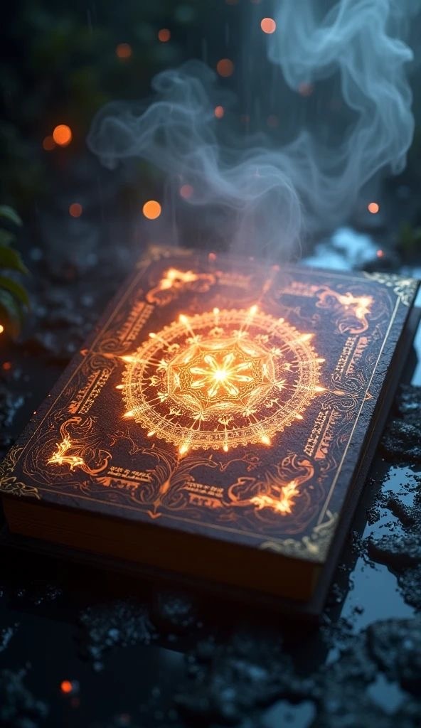 За потайной дверью оказалась небольшая комната, освещённая мягким светом, льющимся из невидимого источника. В центре на каменном постаменте лежала Книга Знаний — её переплёт был украшен серебряными рунами, а страницы, казалось, мерцали изнутри.