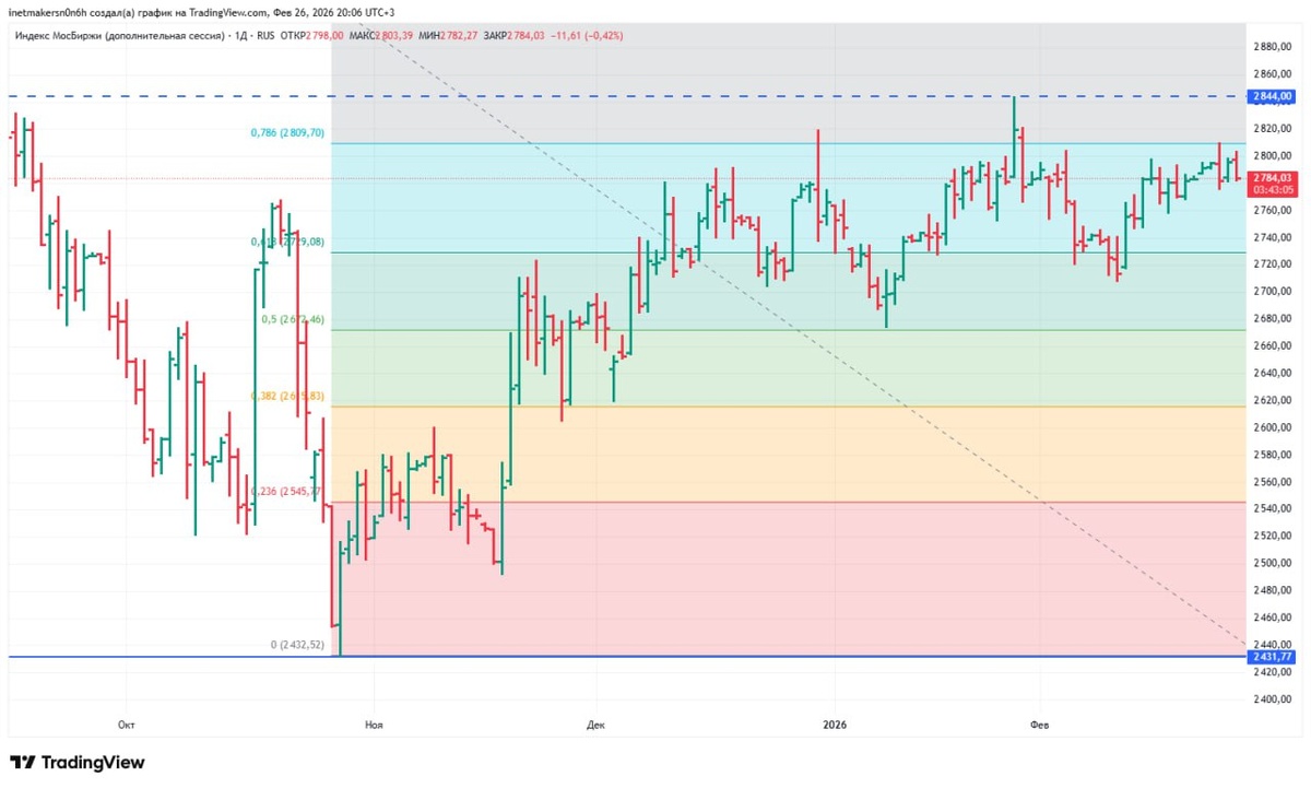 ❗️26 февраля российский фондовый рынок снизился, индекс МосБиржи подешевел на 0,35% до уровня 2785,58